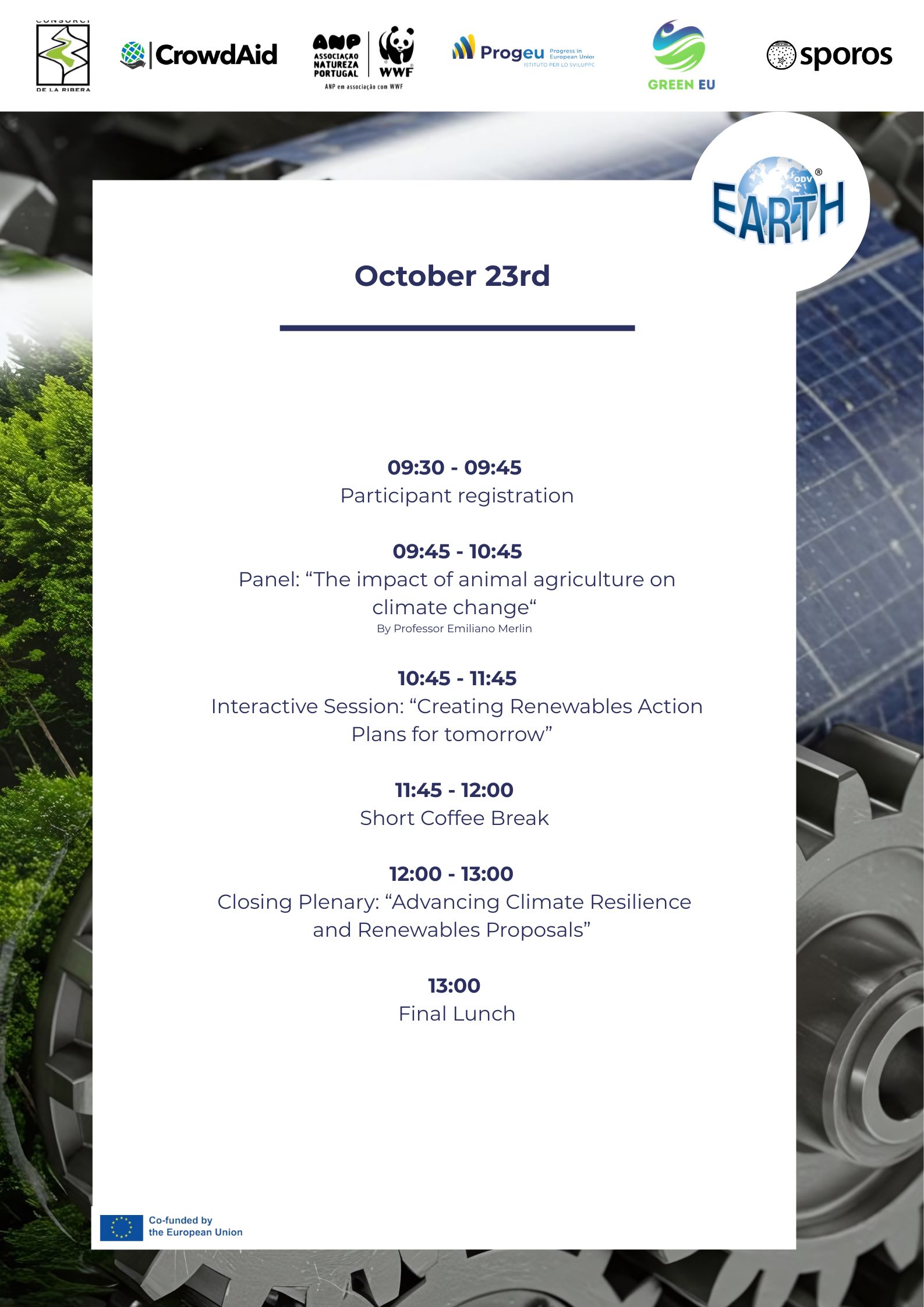 La mattina del 23 dopo la consueta Registrazione dei partecipanti si è proceduto con il panel: “The Impact of Animal Agriculture on Climate Change” Il prof. Emiliano Merlin ha approfondito il legame tra alimentazione, allevamento intensivo e cambiamento climatico, promuovendo uno stile di vita più sostenibile e una maggiore consapevolezza nelle scelte alimentari. I partecipanti hanno posto molti quesiti ed elaborato proposte concrete per l’adozione di scelte sostenibili nei rispettivi Paesi. Durante la sessione plenaria conclusiva, sono stati presentati i risultati dei lavori e le proposte dei giovani per rafforzare la cooperazione europea nel campo dell’energia pulita.
